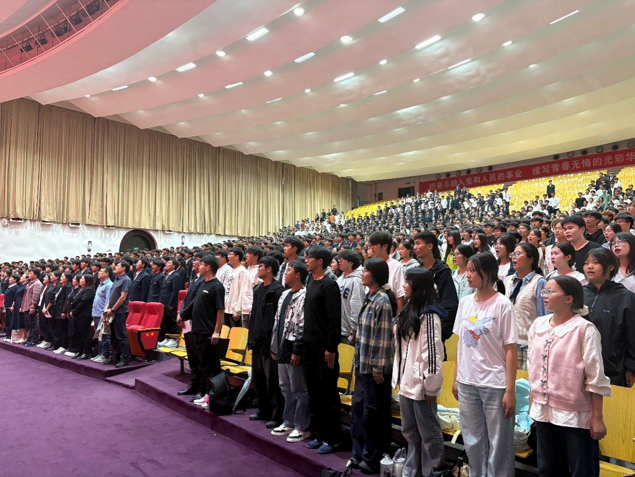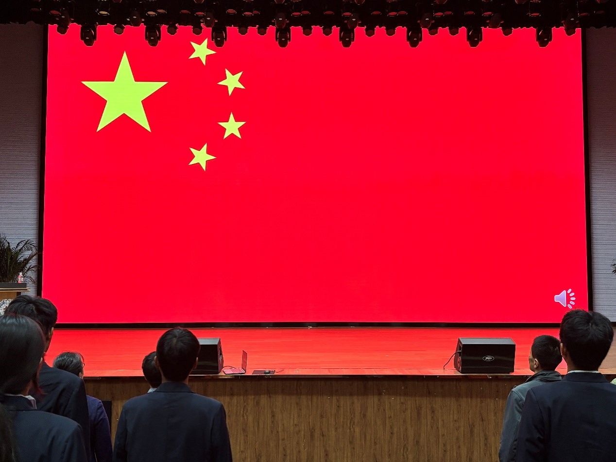 典礼在庄严的中华人民共和国国歌声中拉开帷幕,全体师生起立合唱,激昂旋律凝聚起家国担当,为新生的大学篇章镌刻下庄重序章。