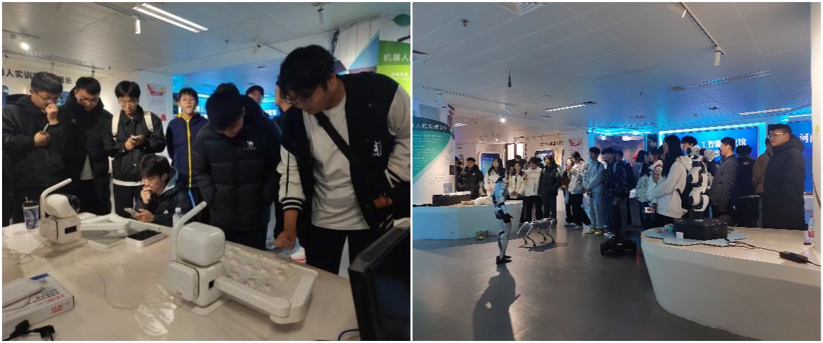 河南省人工智能展览馆内的AI教育内卷、AI虚拟主播等展示板块,更是让大家对人工智能在教育、传媒等领域的应用有了具象认知。从机器人的组成部分讲解到各类智能设备的实操体验,同学们沉浸式探索人工智能的奥秘,对电子信息工程专业在智能科技领域的应用有了初步且深刻的理解。