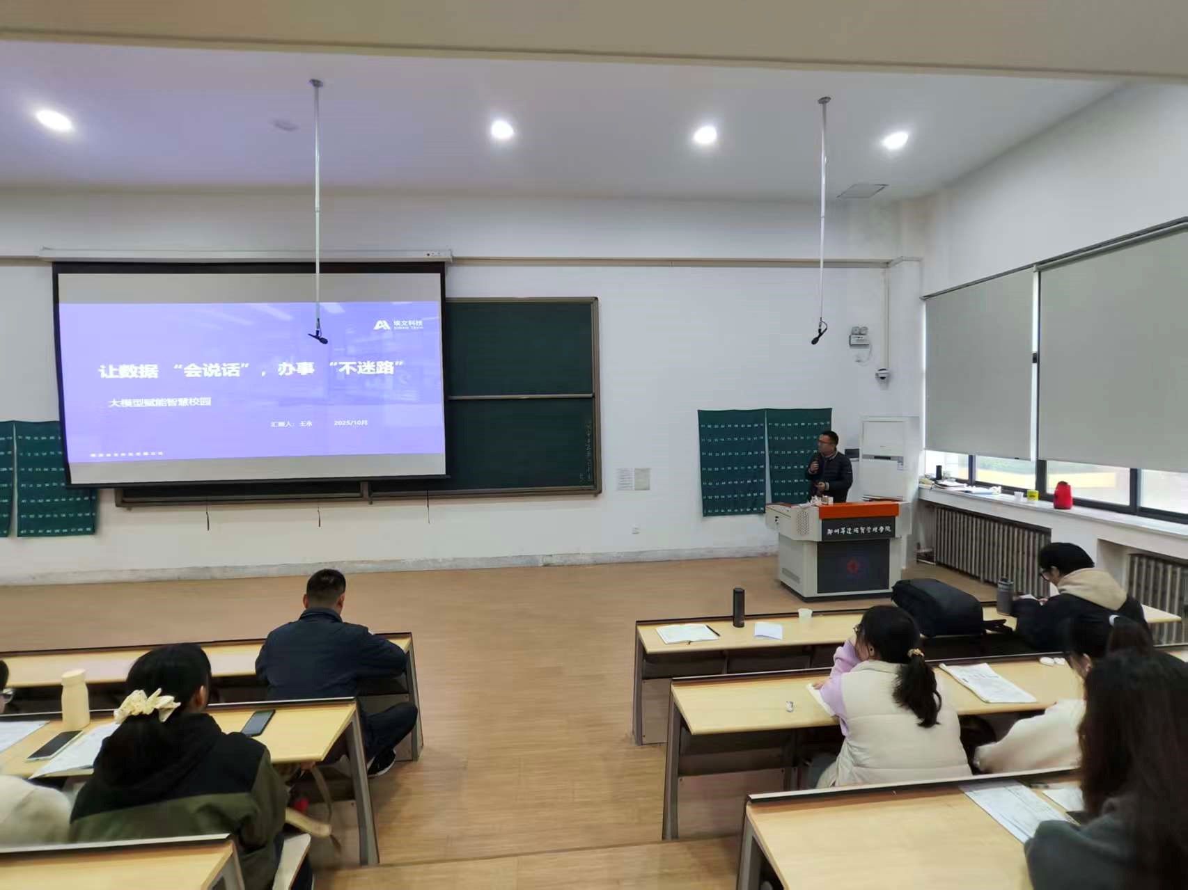 11月6日下午,我校优秀校友、郑州埃文科技有限公司创始人王永博士应邀莅临我院开展学术报告,深度解读大模型技术在智慧校园建设项目中的创新实践,报告会由太阳成集团tyc122cc智能科学与技术教研室主任齐雷主持,太阳成集团tyc122cc副院长程杰和部分师生代表参加了报告会。
