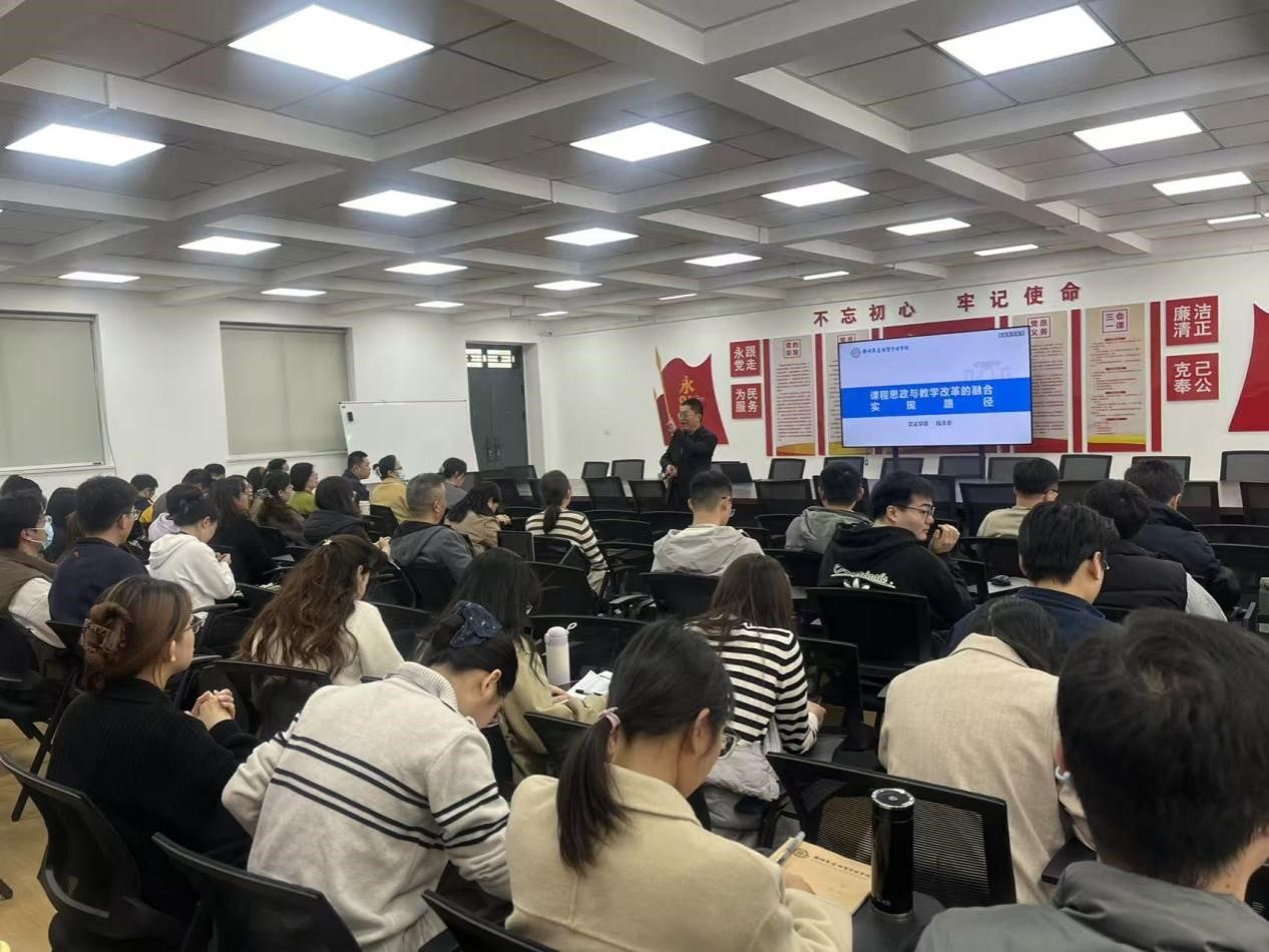随后,培训进入核心环节——“课程思政与教学改革的融合”。段院长指出,实现有效融合的根本前提在于“做一个好老师,坚持师德为先”,并始终明确正确的价值导向。他强调,课程思政并非生硬嫁接,而应是一个环环相扣、有机融入的系统工程。为此,他详细阐述了一条清晰的融合路径:从人才培养方案的顶层设计出发,细化到课程目标的设定,结合精准的学情分析,进行一体化的教学设计与教学安排,并同步改革考核评价方式,最后通过反思总结实现持续改进,形成闭环。段院长还进一步分享了实现课程思政的方法,为在座教师将思政教育内化于专业教学提供了丰富的实用策略。