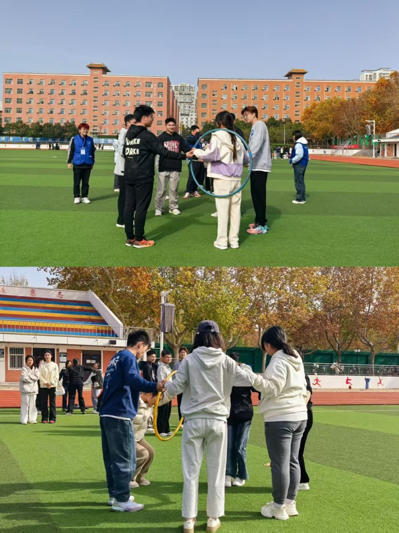 一圈到底项目则展现了同学们之间亲密无间的合作。同学们手拉手围成一个圈,将呼啦圈从第一个人传递到最后一个,过程中大家的手不能松开,只能通过身体的扭动来传递呼啦圈。这个项目让同学们深刻体会到团队合作中沟通和协调的重要性。
