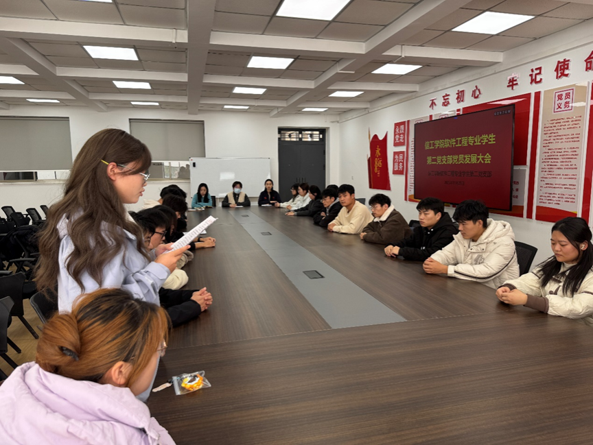 2025 年 11 月 25 日,太阳成集团tyc122cc软件工程专业学生第二党支部召开接收预备党员大会,专题研究讨论并表决接收段留涛等三名同志为中共预备党员事宜。会议由支部组织委员马森琦同志主持,支部全体党员出席会议。